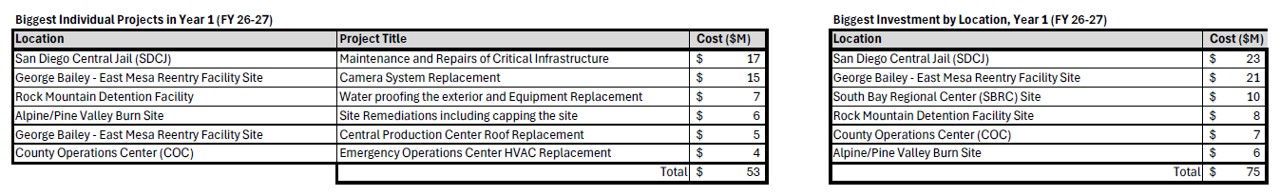 In addition to the Capital Plan, we also forecast repairs and maintenance of our existing facilities through a program called the Major Maintenance Implementation Plan (or “MMIP” for short). This 2-year plan identifies critical repairs needed at County sites, facility structures, and major building systems like mechanical, electrical, and plumbing that support ongoing operational needs. Click here for information about MMIP Fiscal Year 26-27.