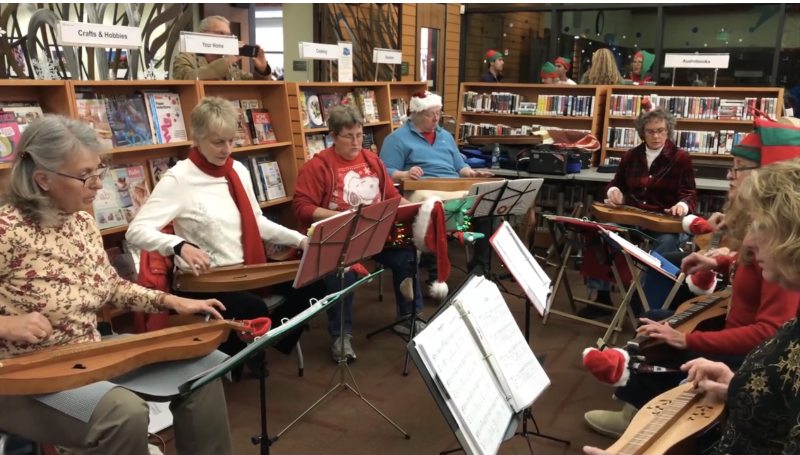 The Fallbrook library brings together staff, patrons and community In unique ways. The Fallbrook library is an important center for community building relationships through education and the arts. For the North County Mountain Dulcimer group, people come from all over San Diego county to be a part of a specialized and little known music group that focuses on an instrument called the “Appalachian” or “Mountain” dulcimer. This is important because mountain dulcimer is considered to be the only acoustic string instrument developed in the United States. It is believed to be developed in Appalachia around the 1700’s by Immigrants who settled there, and became an important source of music and comfort for the settlers. Today, the instrument is still obscure, but due to the soulful sound and ease of learning to play, the instrument and piece of American history is becoming more recognizable. So many thanks to the library for recognizing the historical importance but even more for providing a space for people to come to teach and learn more about this beautiful instrument. I go to the library for books and research and to spend time with my grandchildren to share my love of books and art and special programming, but for myself I have found friendship and purpose through music. We have a space to gather to learn and teach others and share our love of mountain dulcimer.The Fallbrook library staff encourage our growth and outreach by hosting a place to meet and also learning how to perform and more broadly share what we have learned. This group was initially formed years ago by an incredible teacher who is still a central leader of the group today. She has taught and contributed to the development and teaching of so many who help keep the instrument alive. Within and through the library efforts our group regularly finds like-minded people, resulting in friendships and purpose through education, history and music.People from all over come to the group for different reasons, but all have found music as a means to connection and purpose and sharing. For all of this and more, thank you Fallbrook Library!